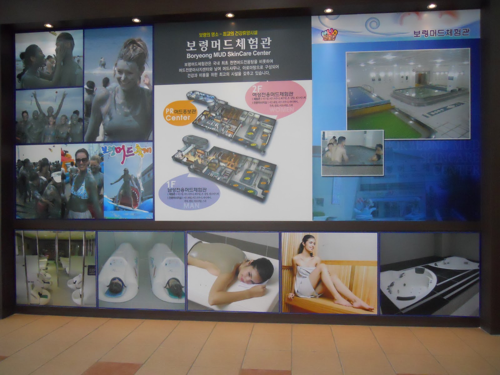 Of course I couldn't take my camera in with me so this is a picture of an advertisement at the entrance of the sauna. Here you can see people enjoying Mudfest as well as some of the different pools |